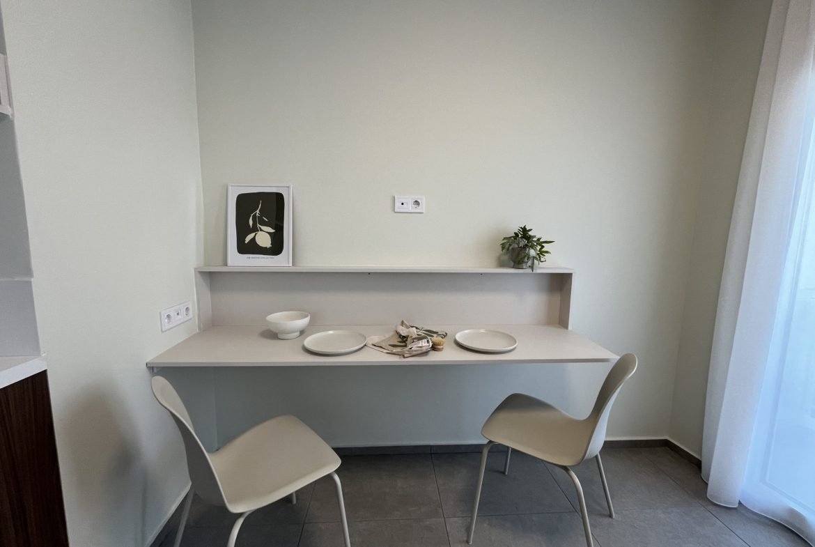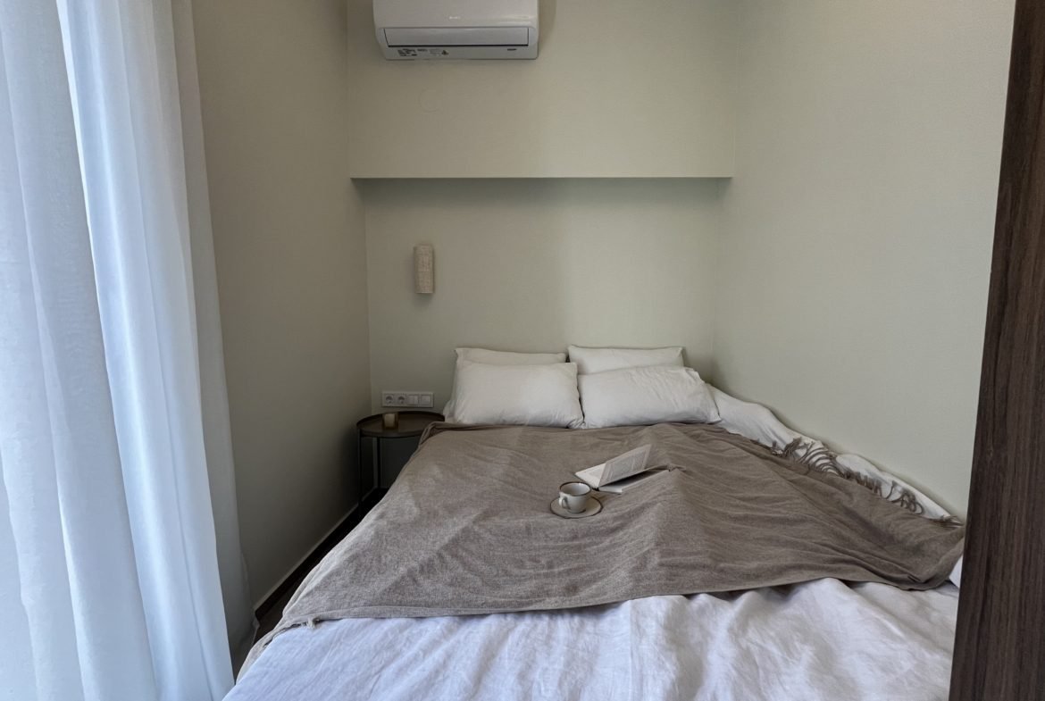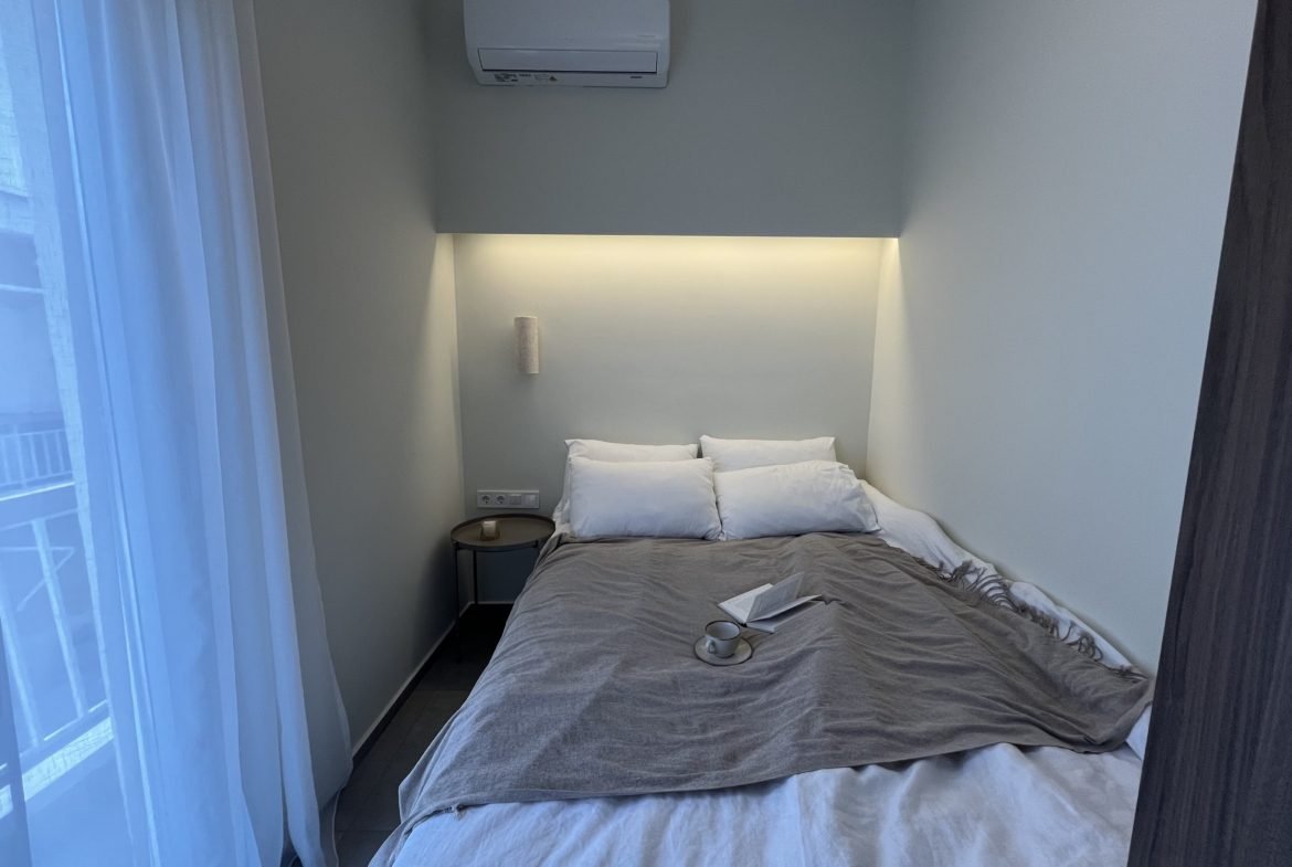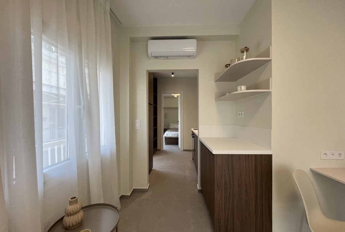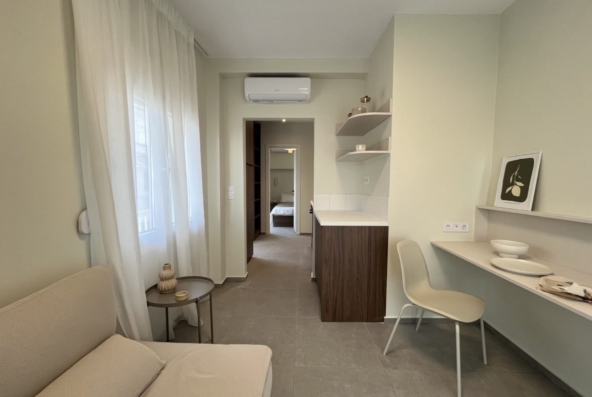 Αποτελείται από σάλοκουζίνα, υπνοδωμάτιο, μπάνιο και ευρύχωρο γωνιακό μπαλκόνι. Πλήρως ανακαινισμένο Πλήρως επιπλωμένο με όλες τις ηλεκτρικές συσκευές. Φωτεινό καθόλη τη διάρκεια της ημέρας, διαμπερές Με συνθετικά κουφώματα και δάπεδό από πλακάκι, θέρμανση και ψύξη από κλιματιστικά inverter Για χαμηλή κατανάλωση