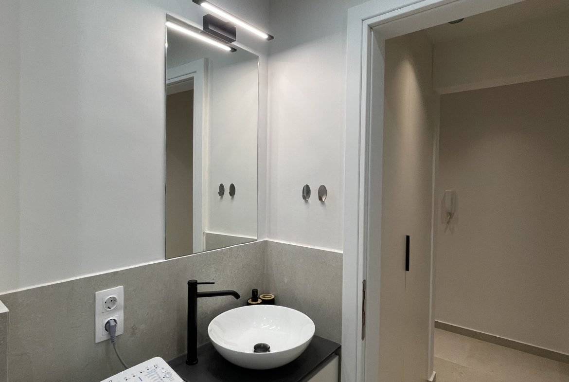 Προς ενοικίαση γκαρσονιέρα στο κέντρο της Καλαμαριάς στην Θεσσαλονίκης. Πρόκειται για μια γκαρσονιέρα 35τμ στον 1ο όροφο σε οικοδομή με ασανσέρ. Αποτελείται από σαλοκουζίνα, ένα υπνοδωμάτιο και μπάνιο. Είναι πλήρως ανακαινισμένο και πλήρως επιπλωμένο με όλες τις ηλεκτρικές συσκευές. Είναι οπίσθιο αλλά φωτεινό.