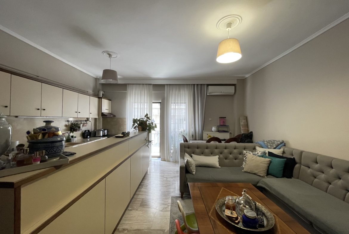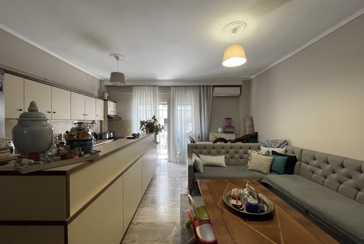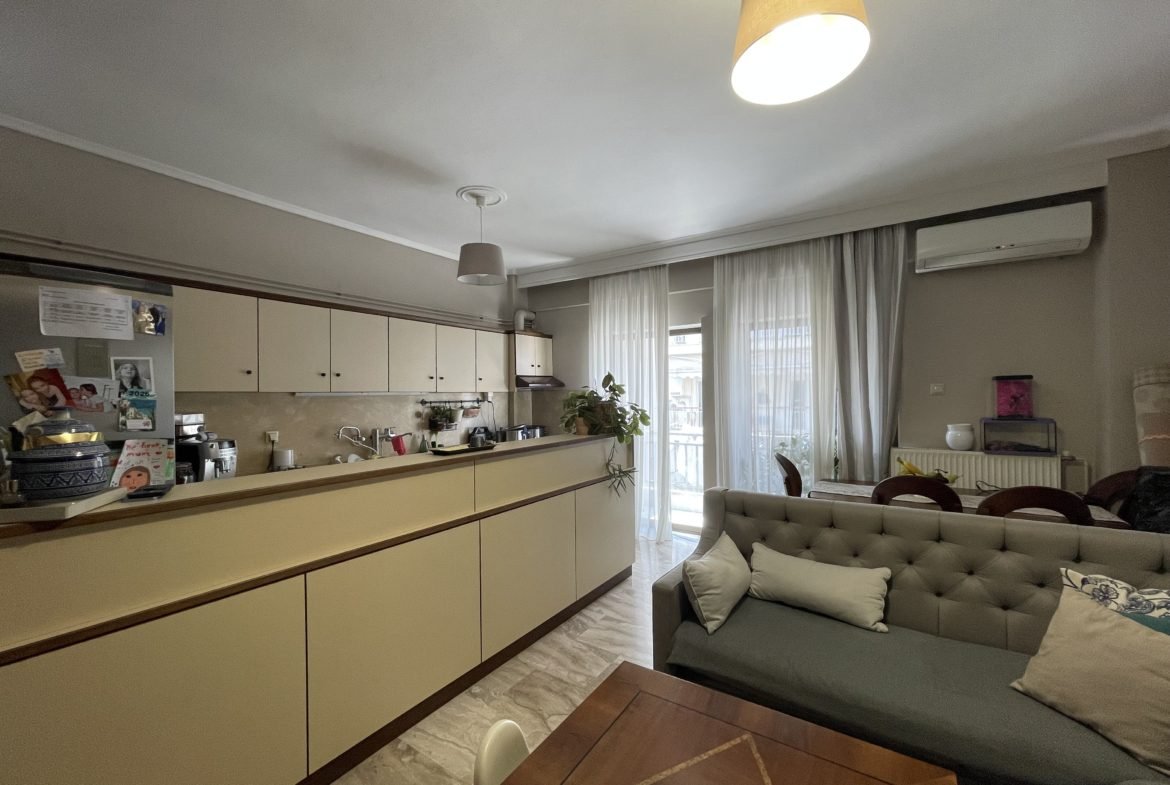 Προς πώληση διαμέρισμα στην περιοχή της Κηφισιάς στην Καλαμαριά, Θεσσαλονίκης. Πρόκειται για ένα διαμέρισμα 77τμ καθαρά και 85τμ μικτά στον 3ο όροφο με ασανσέρ σε οικοδομή κατασκευής του 1987. Αποτελείται από σαλονοκουζινα, 2 υπνοδωμάτια και μπάνιο. Είναι διαμπερές και αρκετά φωτεινό. Διαθέτει θέρμανση από ατομικό φυσικό αέριο και ψύξη από κλιματιστικό. Είναι σε πολύ καλή κατάσταση. Στα επιπρόσθετα είναι και η θέση στάθμευσης στην πυλωτή της οικοδομής.